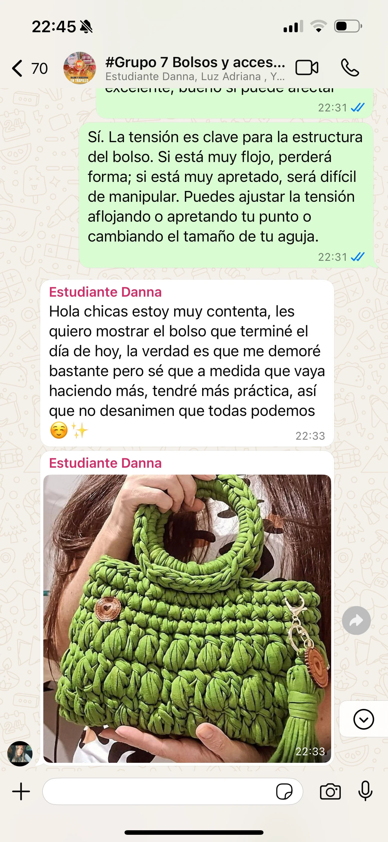 Ya tejes, pero tus bolsos quedan flojos o deformes, el tamaño final no queda como lo imaginabas, las asas no resisten el peso y los acabados no se ven prolijos ni profesionales.