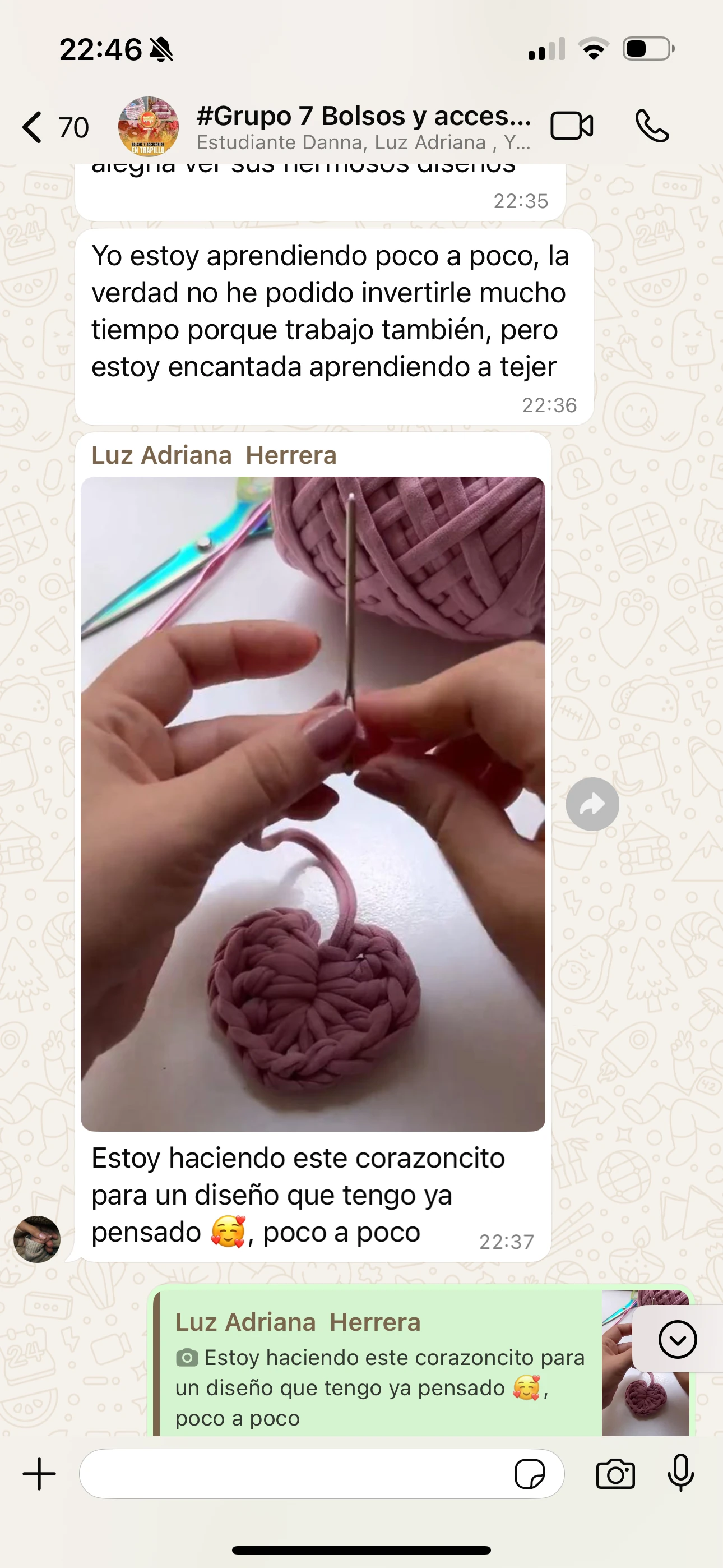 Accederás a un grupo de WhatsApp privado (sólo para alumnas) donde la profesora contestará todas tus preguntas y resolverá todas las dudas que tengas. También podrás hablar con otras alumnas y compartir tus avances y creaciones.