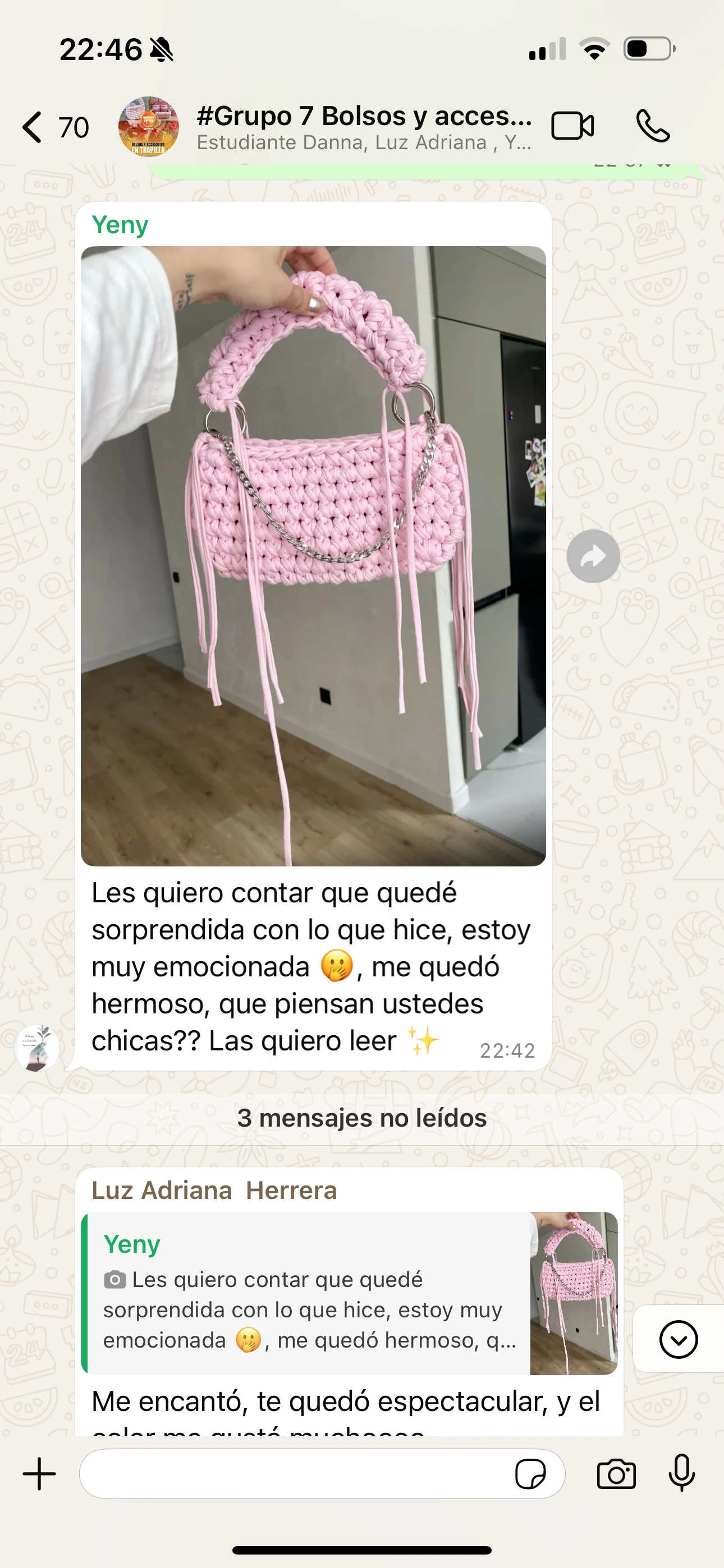 Con nuestro curso online, aprenderás a elaborar bolsos y accesorios en crochet de alta calidad, con diseños exclusivos y en tendencia, incluso si hoy sientes que te falta técnica o seguridad.